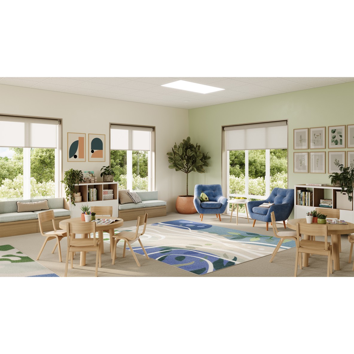 Still Waters brings a sense of quiet balance to learning spaces, inspired by the gentle calm of smooth, undisturbed water. Designed to support focus, comfort, and emotional regulation, this rug creates a peaceful foundation for classrooms and daycares.
